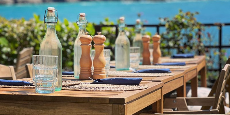 Located at Vazon Bay, Vistas Beach Cafe is the ideal spot for warming up after a surf or sea swim.