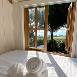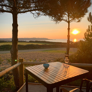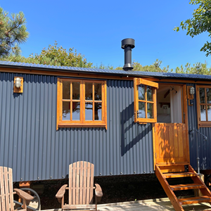 Discover ultimate relaxation in the beautifully-designed Shepherd Huts which comfortably accommodate two adults, with ensuite facilities, a log burning stove and full kitchen. The huts are strategically nestled among the pine trees for complete privacy, ideal for a romantic getaway or solo retreat. Enjoy breath-taking sunset sea views from the comfort of your bed.