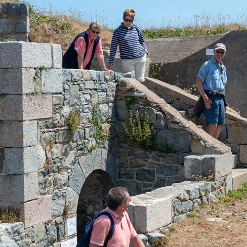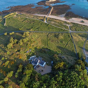 The cottage is attached to the main house but has its own entrance on the ground floor. From the entrance hall a spiral staircase leads up to a good sized open plan kitchen/living/dining room with stunning views of Fort Raz, Longis bay and Essex Hill.Off the ground floor hallway is the first of the two bedrooms, with a large double bed and en suite shower room. The second double bedroom, also with a double bed, lies off the living area and also has the same lovely view of Longis bay. There is also a second bathroom with freestanding bath.Outside there is parking and the cottage has its own outdoor furniture and seating area. A private picnic area for cottage guests is situated on higher ground and also offers superb views over Longis Bay.