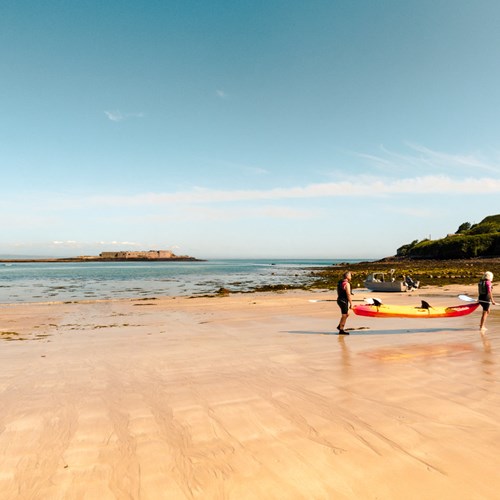 Pronounced ‘Soy’ by locals, Saye is a lovely long beach of white sand right next to the campsite. The sea is beautifully clear and blue, there is rockpooling on the rocks at each end and more than enough sand for anybody that cares to sit there! Even in the height of the summer you can often discover an entire beach all to yourself, or share it with a couple of oyster catchers or the resident grey seal. The beach dunes protect the campsite perfectly, with a gentle tumble over the soft sands down to the sea.
