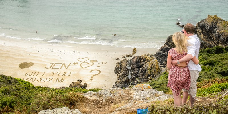 The Islands of Guernsey are a special place to visit, and have been the setting for many romantic moments, including this beautiful proposal over Petit Port beach, which was made possible with the help of many friendly locals.