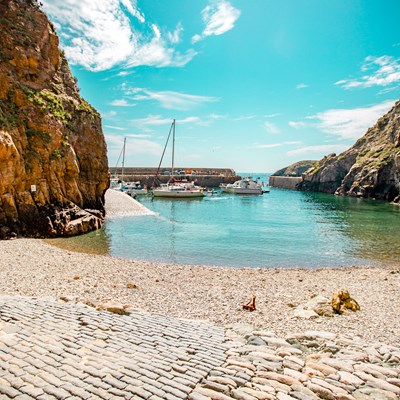 A small harbour landing at the most western point of the island that you can fish from, or you can head down the surrounding rocks or the sandy area below for some rockpooling and fishing.