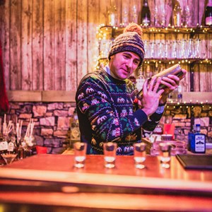 Complete with snowy scenery, rustic wooden walls, a flickering fire, a fully stocked bar, sofas with chunky rugs and everything you’d want in an après ski experience, the Alpine Lodge is the perfect winter wonderland to while away a few hours.