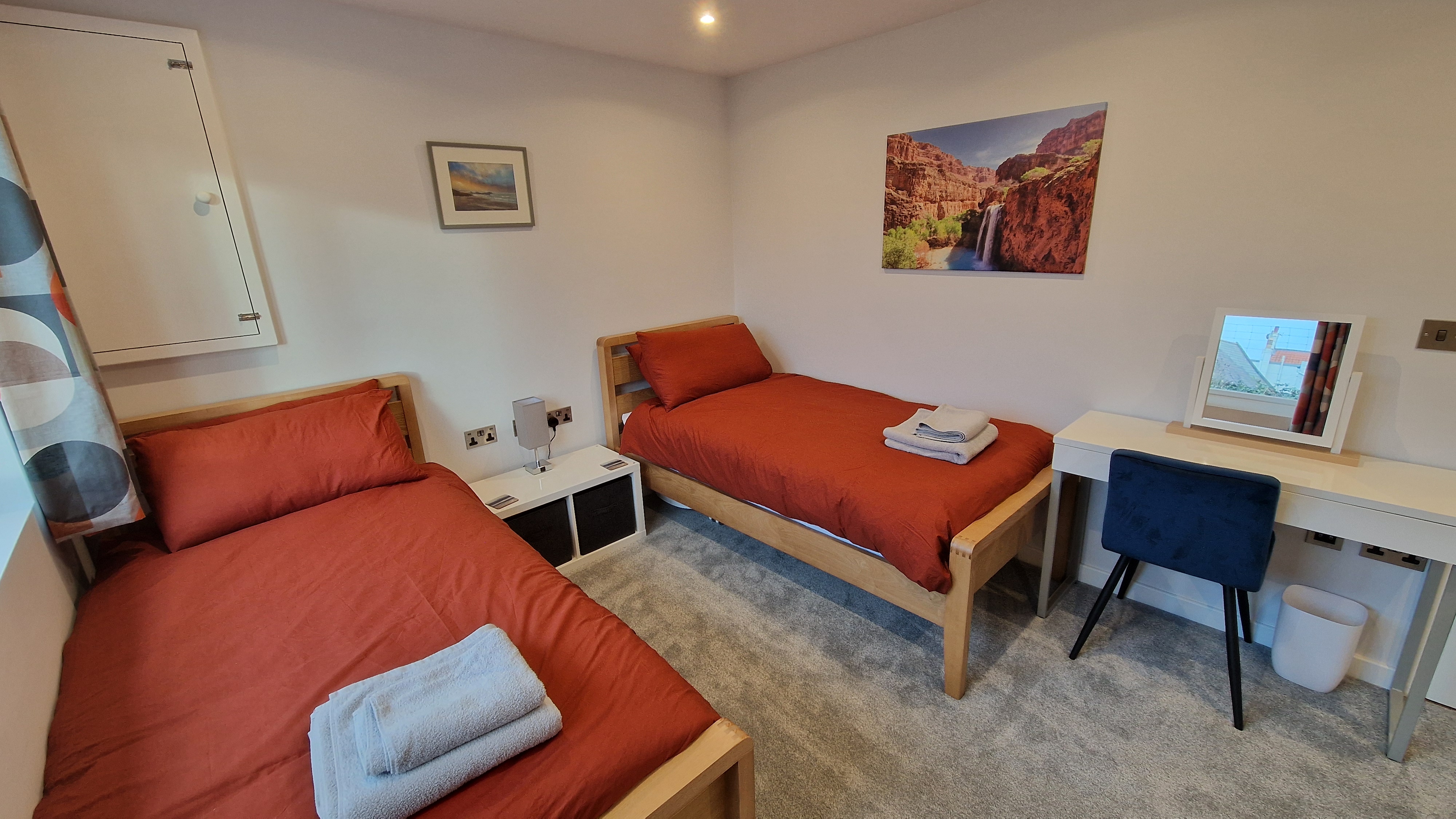 Brand-new self-contained, fully equipped two bedroom bungalow with parking, perfect for two to four guests. It is located in the parish of Vale, a 5 to 10 minute walk to Bordeaux Harbour and beach where you can enjoy walking the beautiful Guernsey coastline. It is a 10 minute walk to shops, takeaways and supermarkets. A peaceful space to relax in your own private garden.