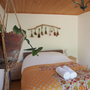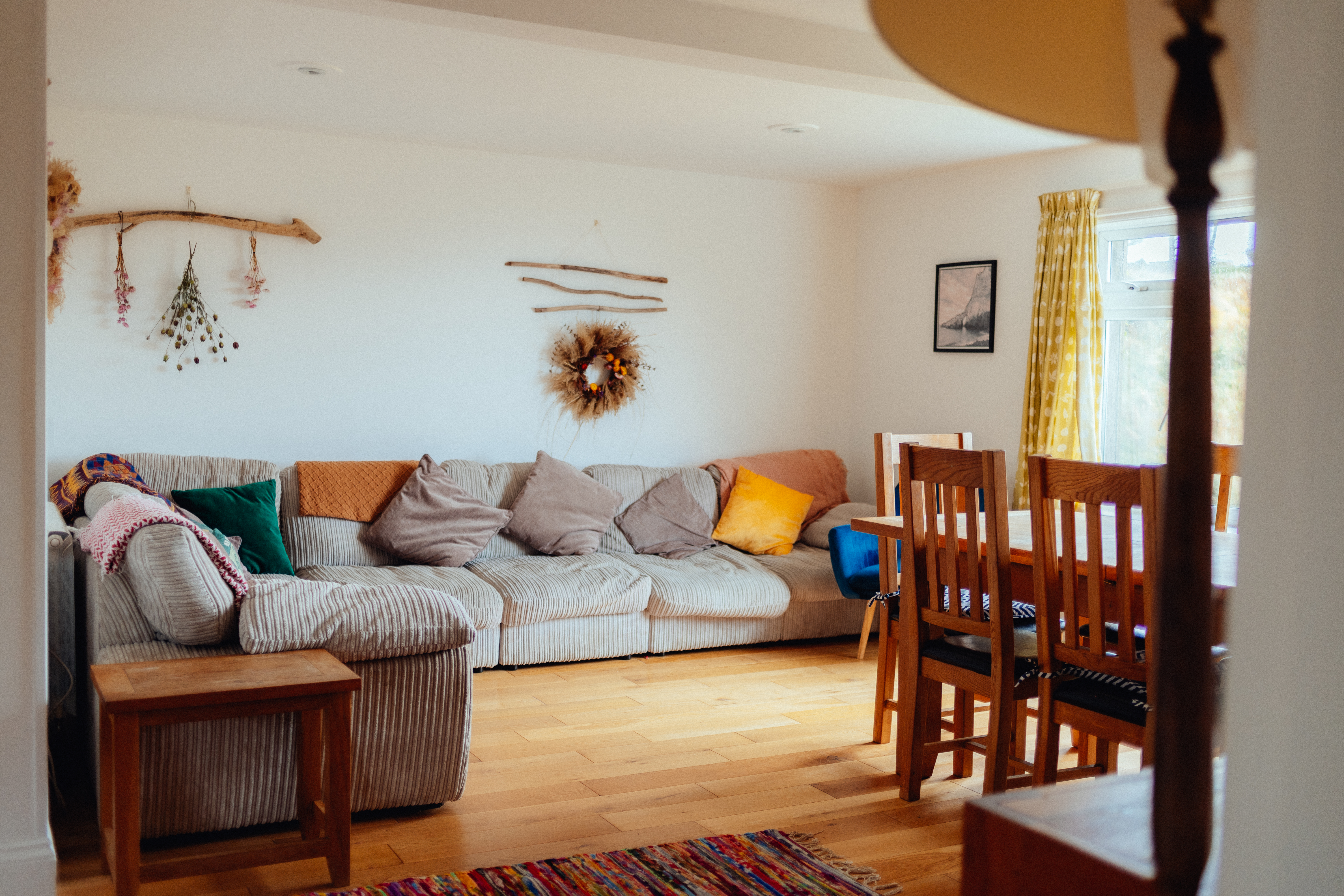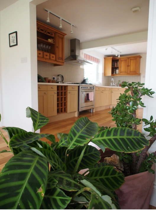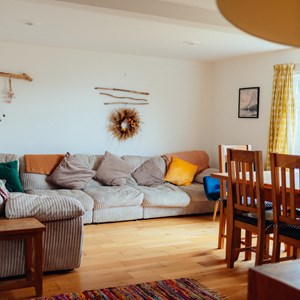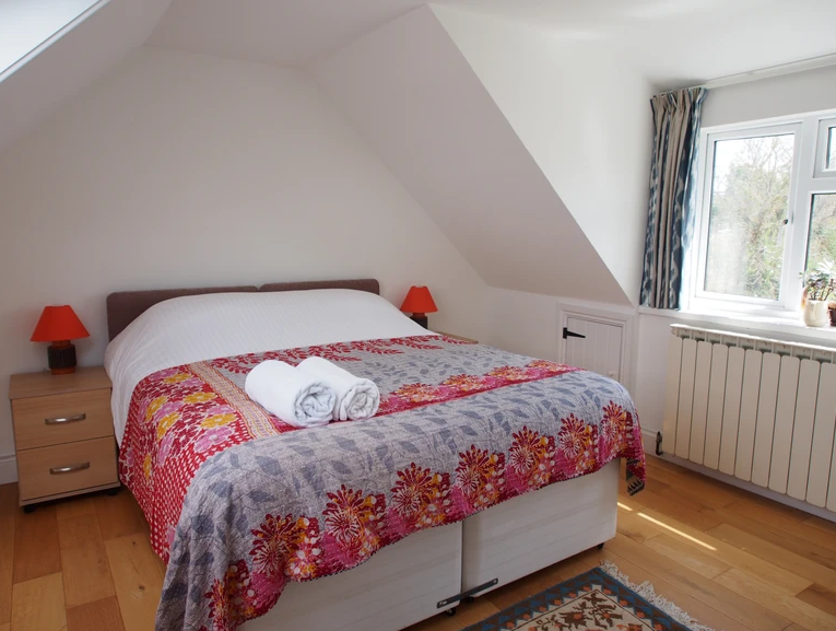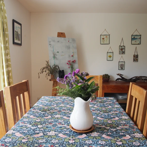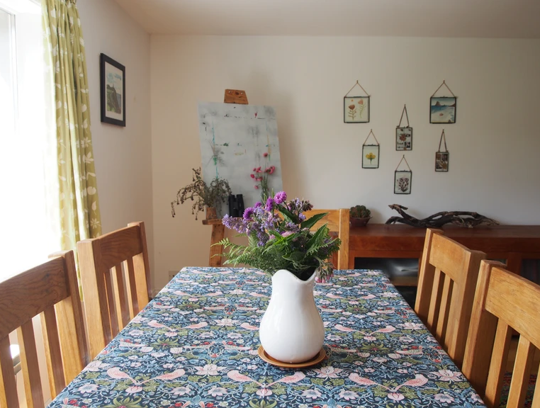 There are fantastic valley and sea views from the living/dining room, whilst the other rooms look out onto the front and back gardens. The House is decorated in vibrant colours and patterns with bespoke artwork adorning the walls and beautiful plants and dried flowers dotted around. The kitchen comes fully equipped and there's a selection of children's toys as well.