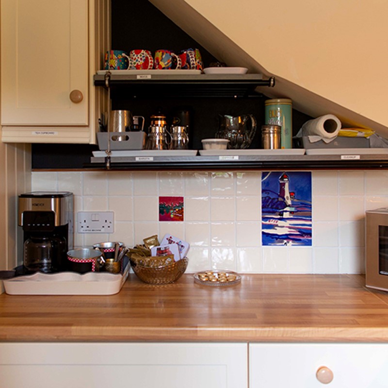 - Modern fitted kitchen with a Range cooker and ceramic hob, fridge-freezer, slimline dishwasher, microwave/combi’ oven and coffee machine