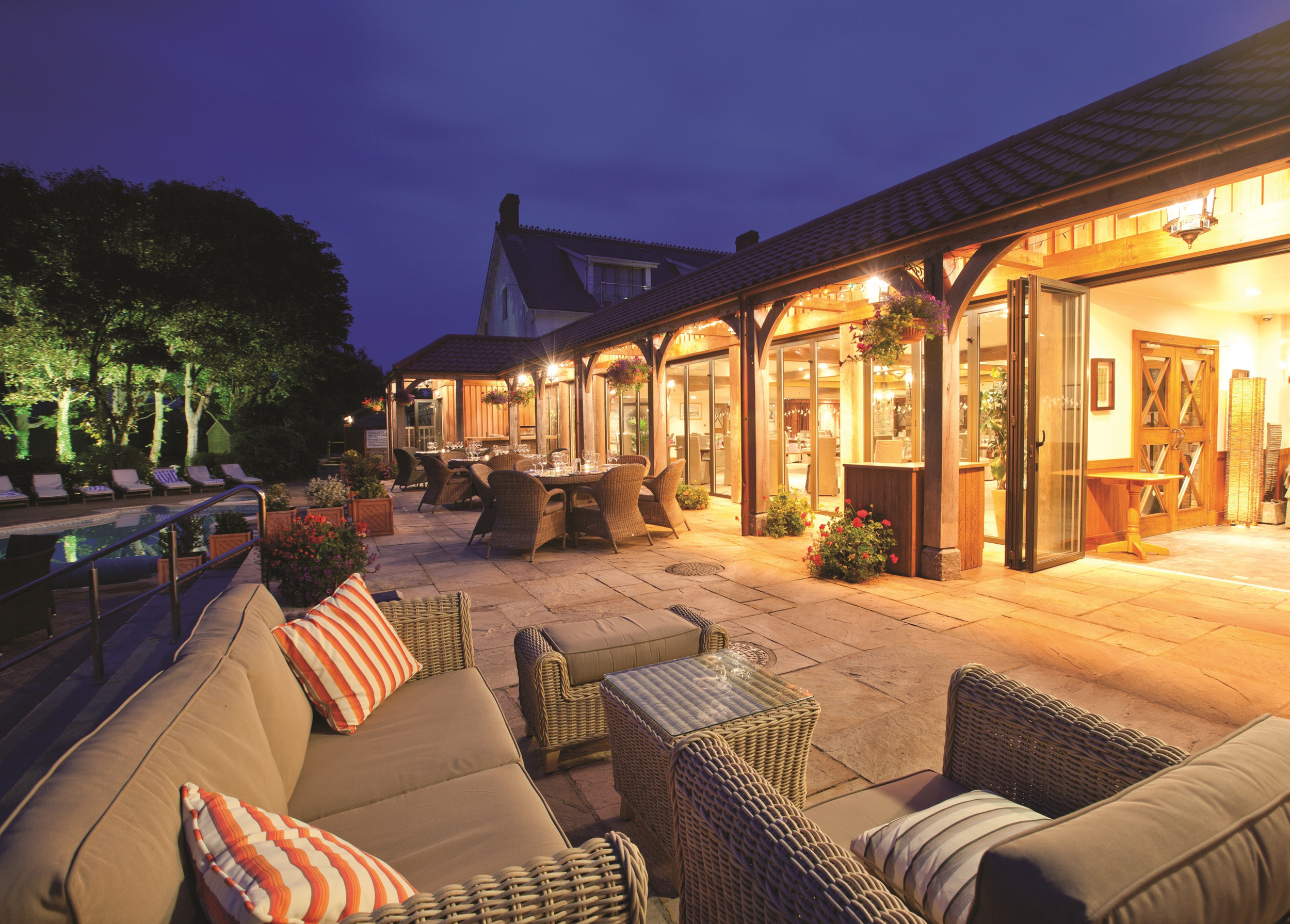 Food is at the heart of The Farmhouse, with a variety of mouth-watering menus available throughout the day in a choice of areas including the poolside terrace and mature gardens, where you can enjoy al fresco drinks & dining in summer. The ambient Firefly restaurant features an open log fire to keep you cosy in winter, whilst The Stable Bar & Lounge is popular for coffee, cocktails and casual dining. Start your day with an award-winning breakfast, enjoy seasonal à la carte menus for lunch or dinner, indulge in a deliciously different afternoon tea or lay out a blanket and share a picnic on the lawn.