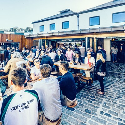 The Slaughterhouse in St Peter Port offers several spots for outdoor drinks and dining. The main courtyard houses several large tables and is particularly popular for cocktails, while the roof terrace offers more peaceful dining, with views across town and the neighbouring islands.