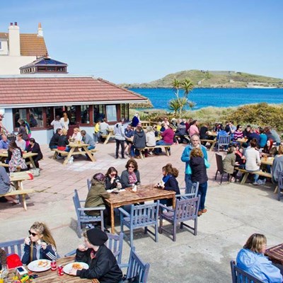 Just a few doors down from the tearoom you will find Cobo Bay Hotel's beach terrace. Offering panoramic views of Cobo Bay and al fresco drinks and dining in a relaxed atmosphere, it is a perfect place to watch the sunset. During the summer months you can also find them hosting their famous balcony gigs.