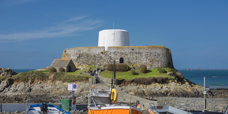 Known locally as the "Cup and Saucer", Fort Grey is a Martello Tower originally built in 1804 to defend Guernsey's west coast.