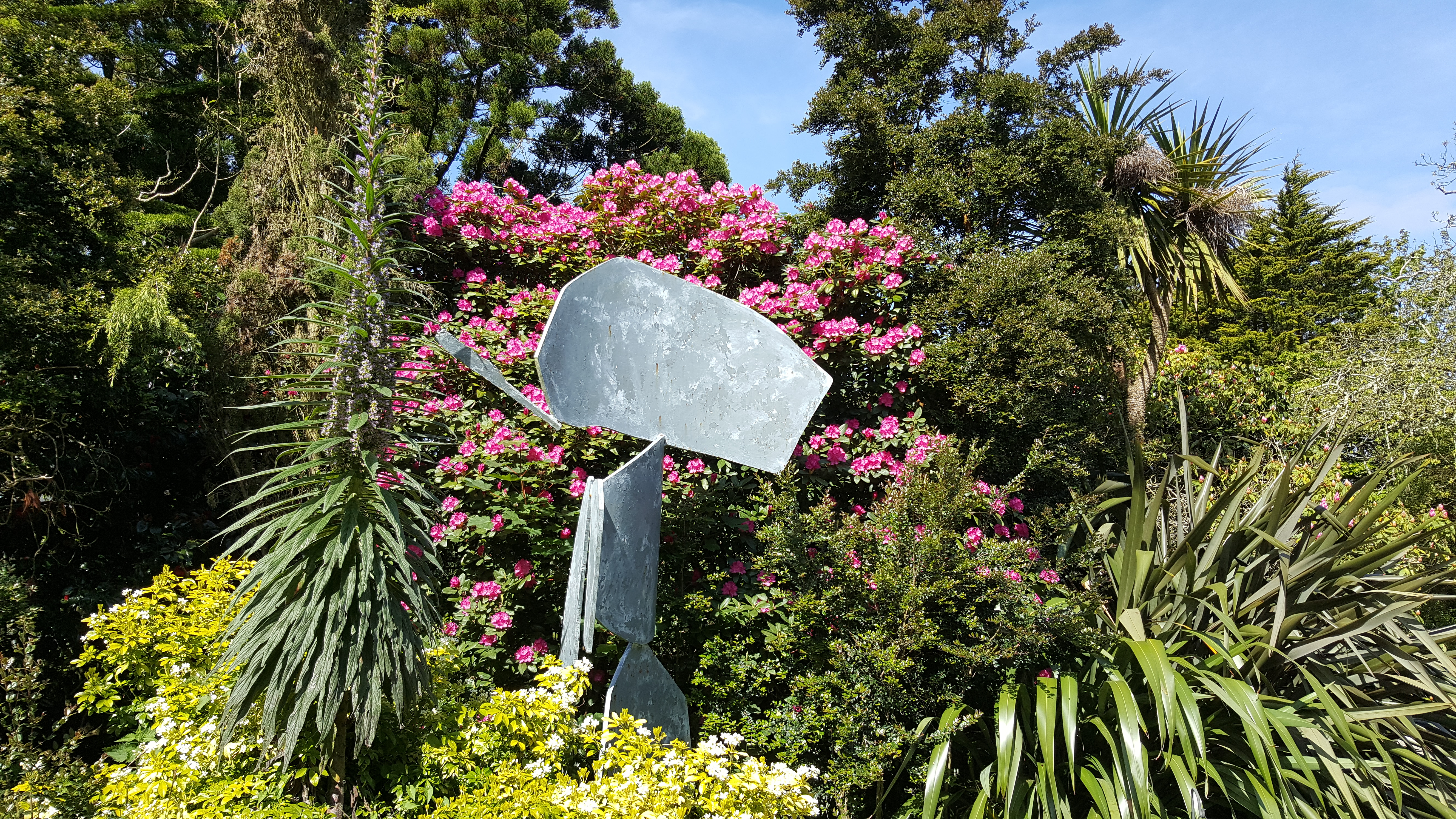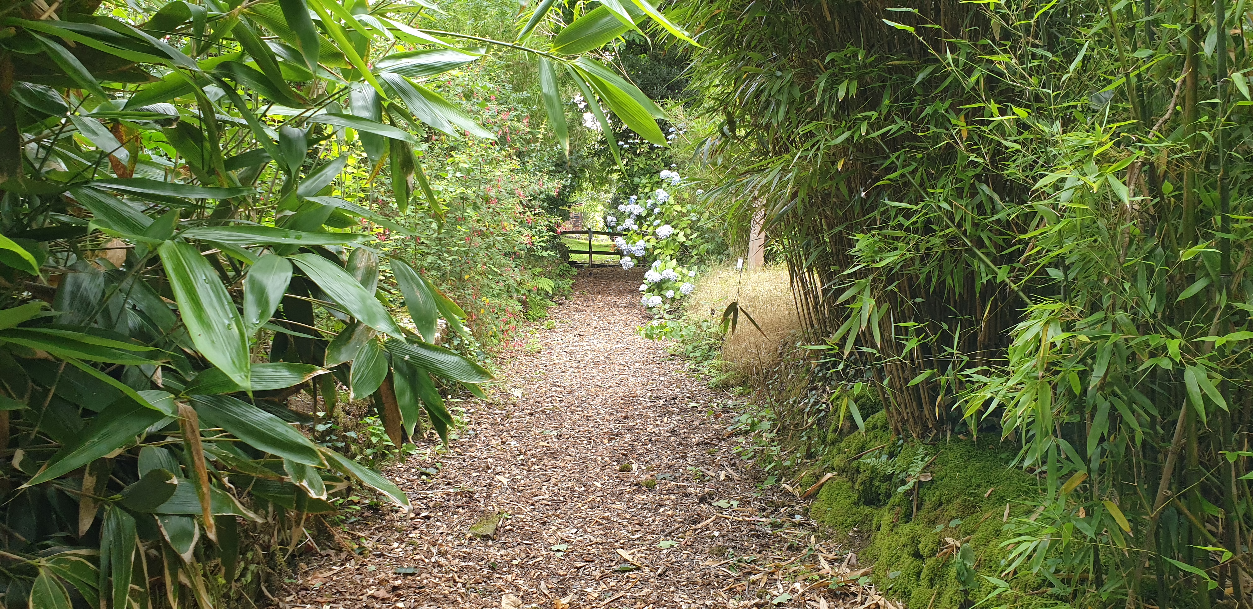 Wandering through the winding paths and jungle-like glades allows you to discover a wide range of plants including Giant Geraniums, Echiums, Palm trees, Bamboos, Yams (Collocasia & Alocasia), Banana trees, Tree Ferns and Camellias galore.