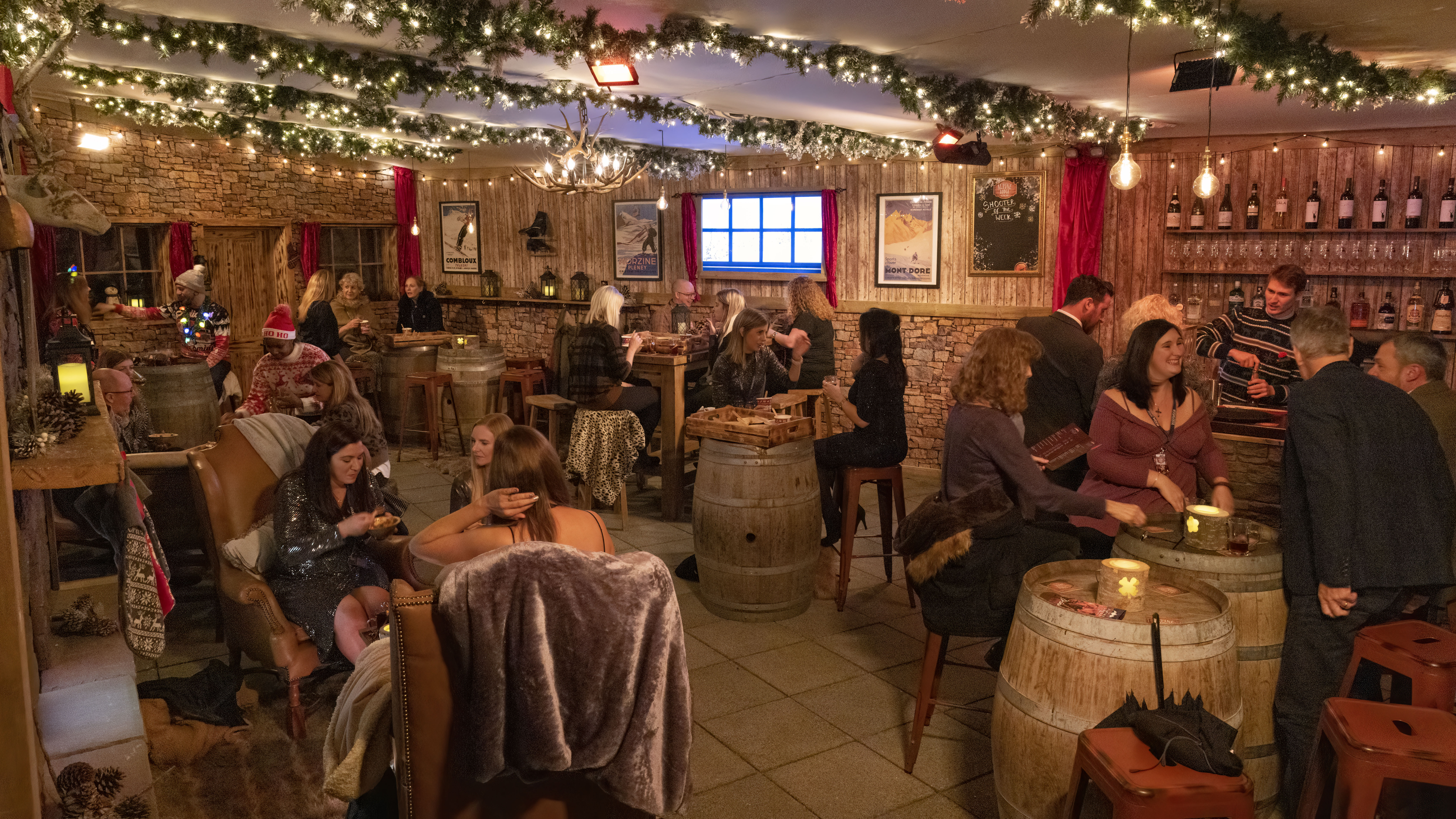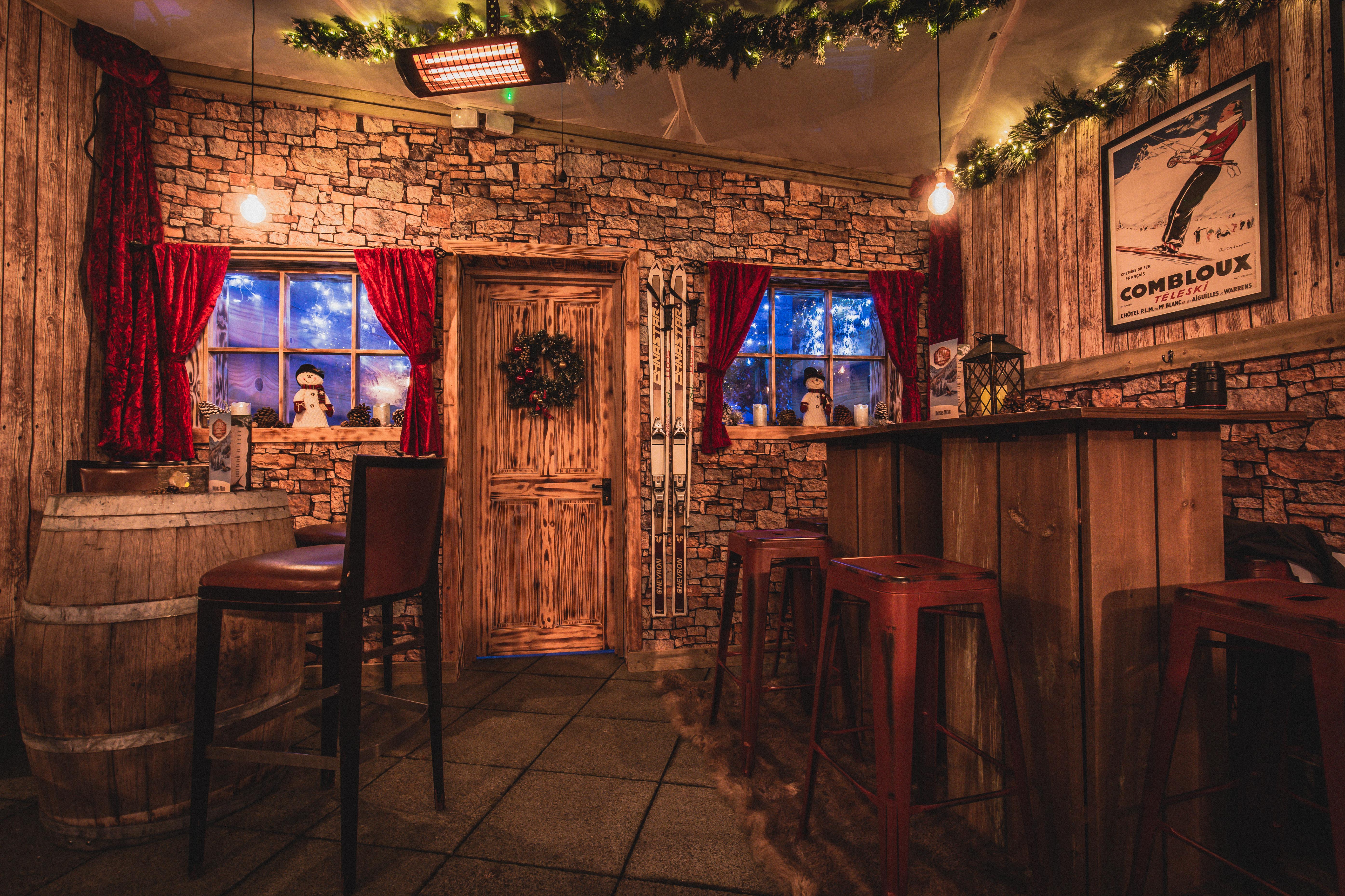 Complete with snowy scenery, rustic wooden walls, a flickering fire, a fully stocked bar, sofas with chunky rugs and everything you’d want in an après ski experience, the Alpine Lodge is the perfect winter wonderland to while away a few hours.