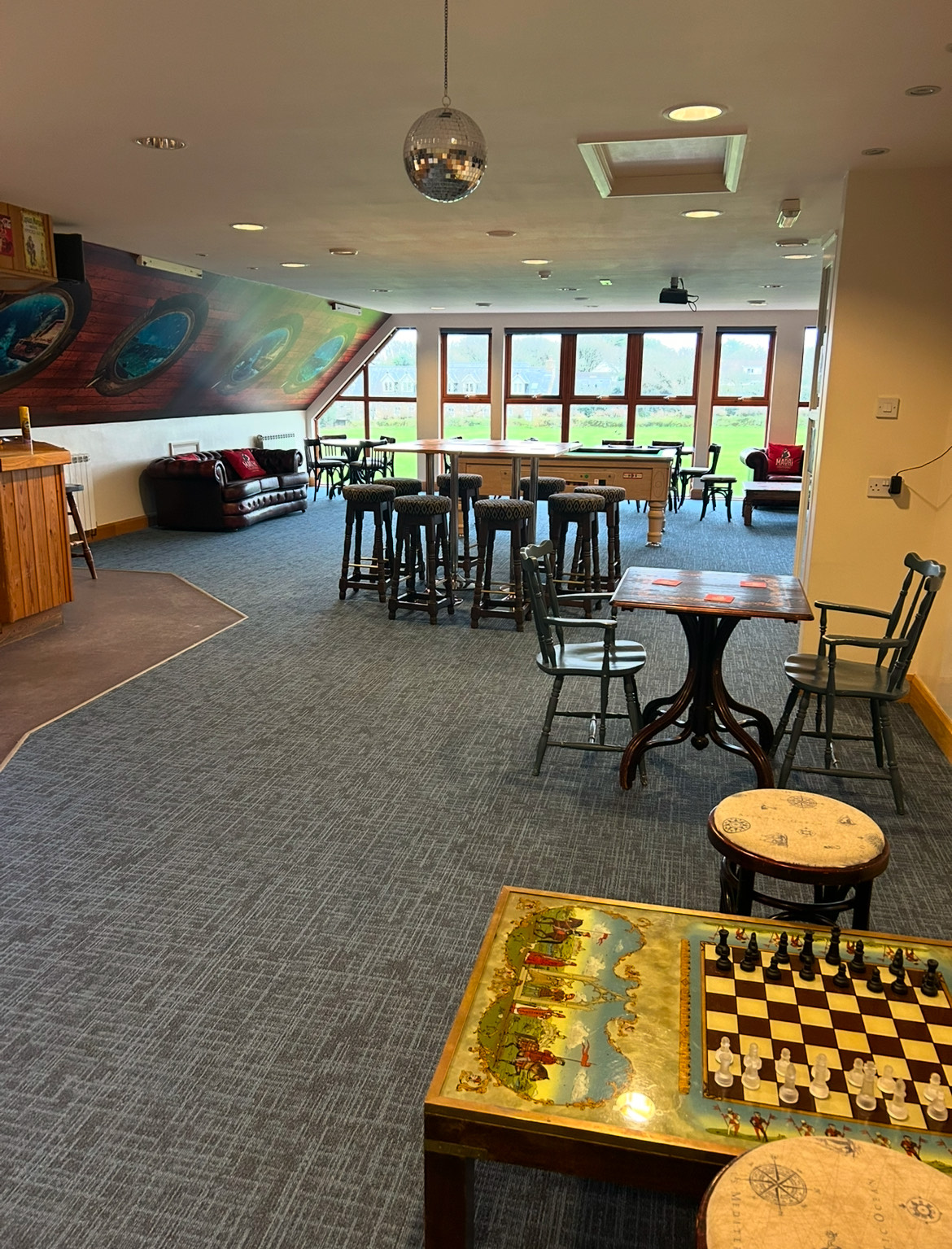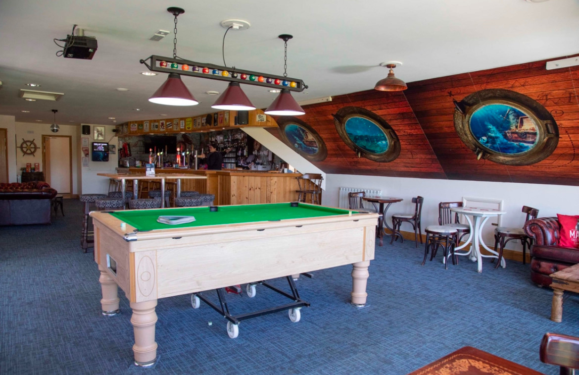 Upstairs, you can find the Captain's Bar, which features a pool table, a Jukebox, dartboards and an outside Balcony.