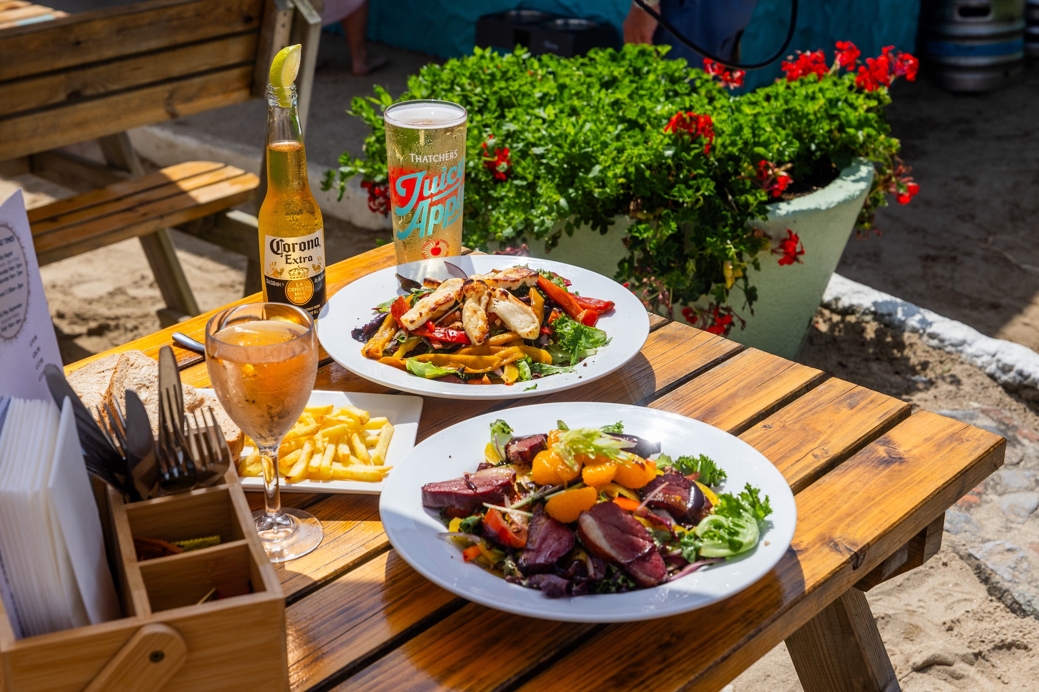 On the east side of Herm Island both Shell Beach and Belvoir Bay are home to beach cafés serving fantastic salads, sandwiches, hot chips, hot & cold drinks, milk shakes, cakes and pastries all day – as well as the all-important ice creams. Sit at one of the picnic benches at the café or hire a deckchair and spend the day relaxing on the beach.