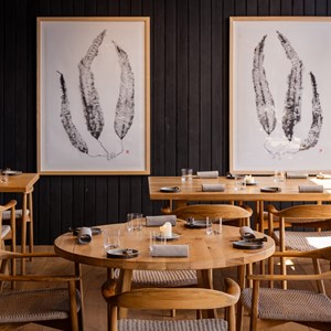The 25-cover restaurant offers a tasting menu for both lunch and dinner. Embodying Nathan’s primal ethos, the menu champions the finest local and British produce, with ingredients picked, foraged, and sourced from Guernsey and its surrounding regions. At the heart of the open kitchen is a Basque-inspired, custom-built, fire-driven grill, designed primarily to cook whole fish and meat on the bone, perfectly sized for sharing.