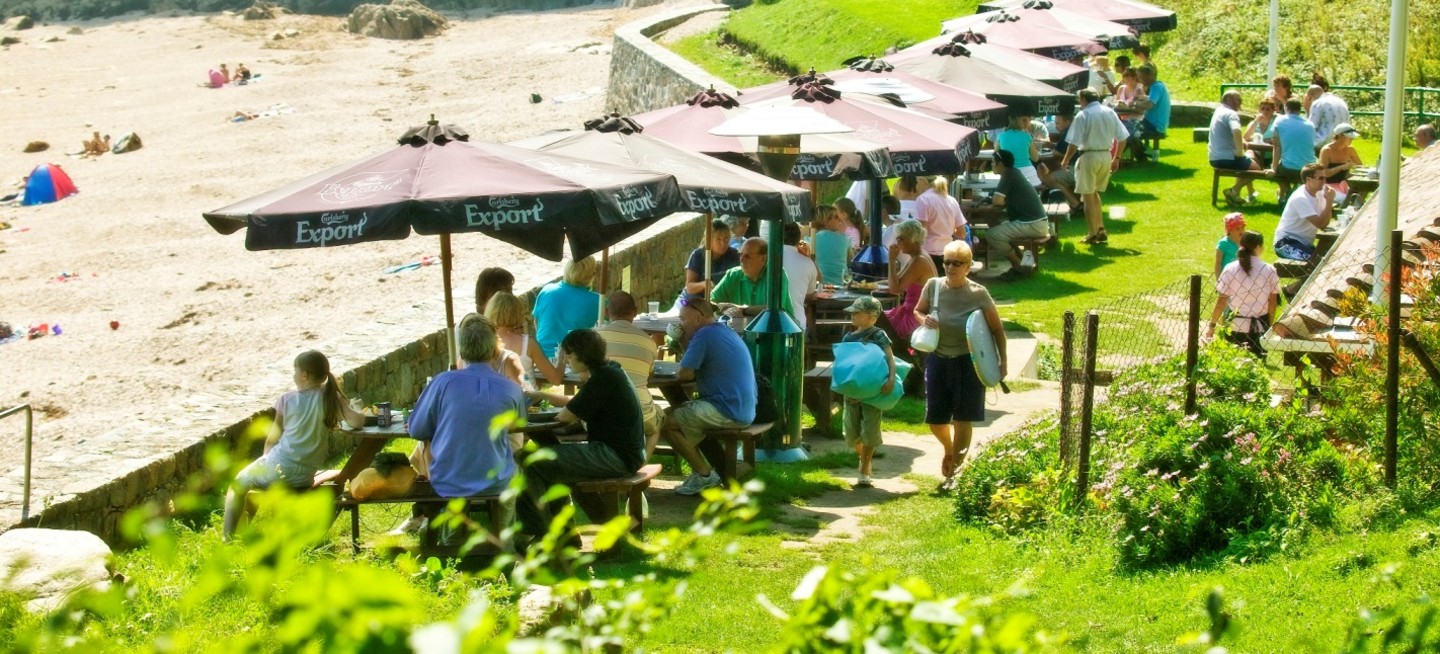 Not far from Guernsey’s Airport is Petit Bot Bay, a sheltered cove with plenty of rock pools to explore at low tide. The Petit Bot Tea Room is a staple of Guernsey’s kiosk heritage serving drinks, snacks and ice creams with outdoor seating in its sunny courtyard with views down the slipway and onto the bay.