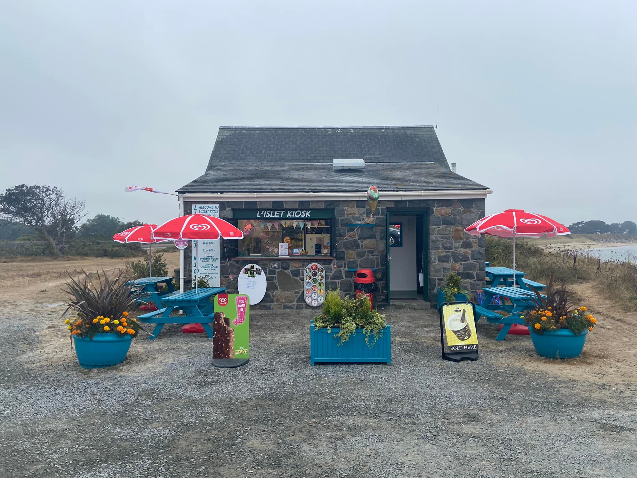 Shortly after Vale Church, curve around Grand Harve and Vale Pond, the last remaining evidence that Guernsey was once two islands, parted by a saltwater channel. The Vale Pond is breeding habitat for bird-life, including snipe, heron and little egrets, and has a public viewing hide. Opposite the pond is the lovely Grand Havre beach and L’Islet Kiosk. A local family run kiosk, selling lots of hot and cold food, excellent Barista style coffees and Guernsey Dairy ice cream.