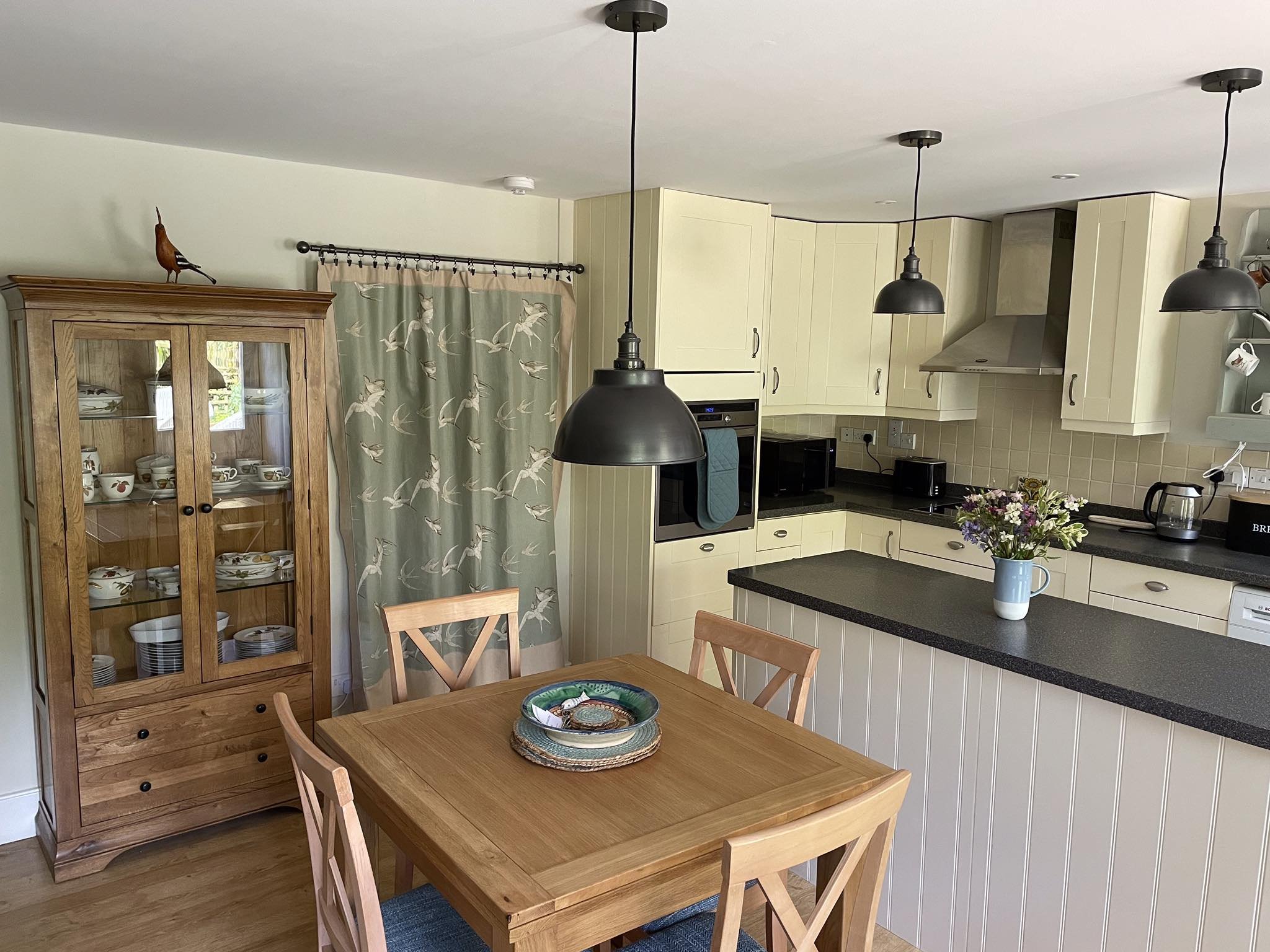 The ground floor has a spacious, fully equipped kitchen/dining room and a large living room with views over the garden. There is a south-facing sun terrace outside the cottage with seating overlooking a landscaped wildlife garden and pond. Upstairs are two light and comfortable double bedrooms (one large double, one standard double) with ensuite shower rooms.